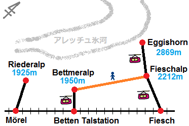 (0h07) → フィーシャーアルプ[Fiescheralp] →
