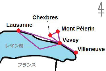 | 8/15(月) | レマン湖地方(レマン湖遊覧船、モン・ペルランからハイキング、シェーブルにてワイン試飲) | ローザンヌ |