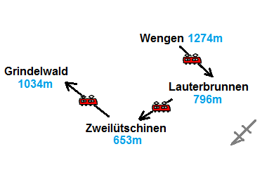 (ラウターブルンネン[Lauterbrunnen]、ツヴァイリュッチネン[Zweilütschinen]経由) →