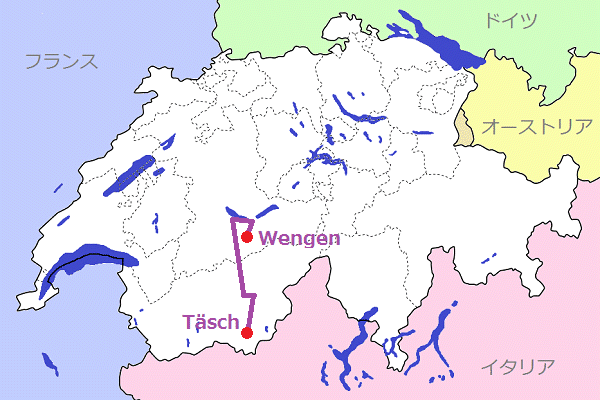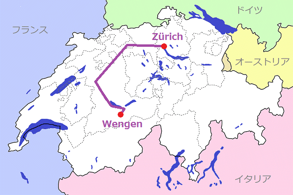 | 8/9(火) | 成田 → (飛行機) → チューリヒ① → ヴェンゲン② | ヴェンゲン |