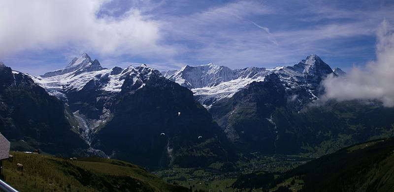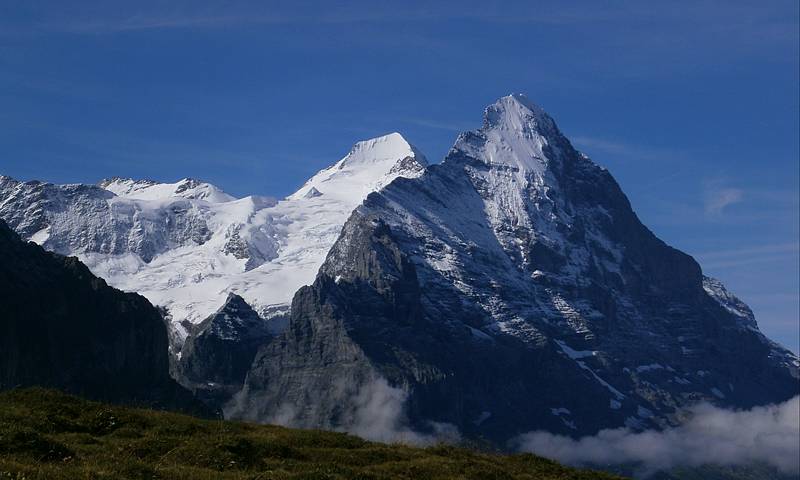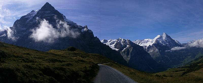 フィルストにて 左:シュレックホルン[Schreckhorn](4078m)、右:アイガー[Eiger](3970m)