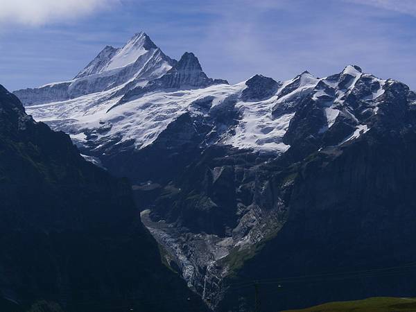 メンリッヒェン 左からアイガー[Eiger](3970m)、メンヒ[Monch](4099m)、ユングフラウ[Jungfrau](4158m)