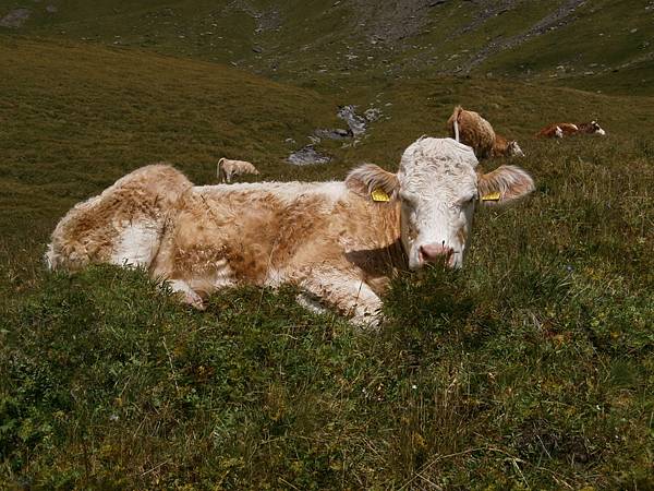 景色に気を取られて水たまりに浸かり、牛の糞を踏み、それでもめげずに約2時間後、フィルスト(2168m)に到着。