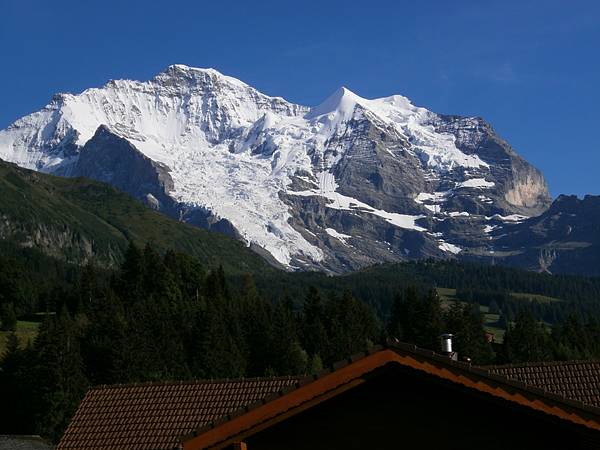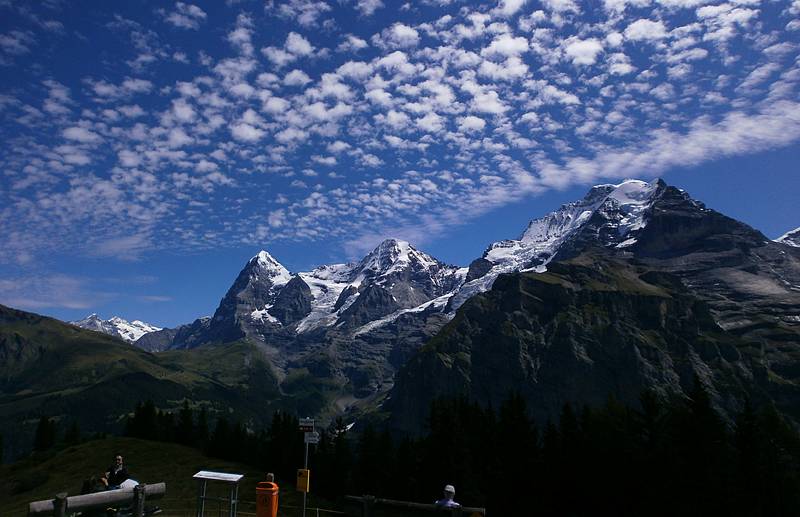 アルメントフーベルにて 左からアイガー[Eiger](3970m)、メンヒ[Monch](4099m)、ユングフラウ[Jungfrau](4158m)