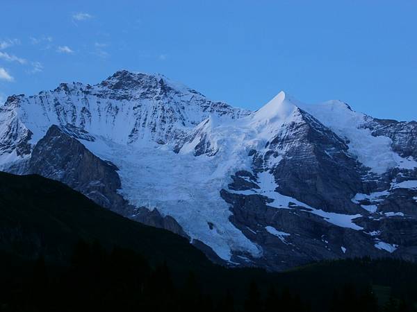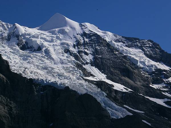 ユングフラウの右横の真っ白なジルバーホルン[Silberhorn](3695m)が間近に迫る。