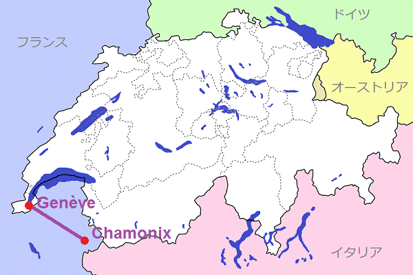 | 8/17(日) | シャモニー周辺(エギュィーユ・デュ・ミディ、エルブロネ、ラック・ブルー、プラン・ドゥ・レギュィーユ) | ジュネーブ |