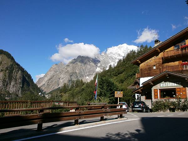 左:クールマイヨール行きのバスからの車窓(モンブラン)、右:ラ・パルド
