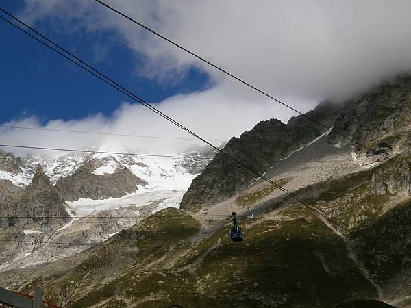 イタリア側のエルブロネ(3466m)へゴンドラでの空中散歩。エルブロネで降りることはできずそのまま往復するのみだけど、景色は最高に良い。 ちなみにモンブラン・マルチパスは使えない。