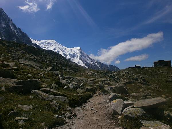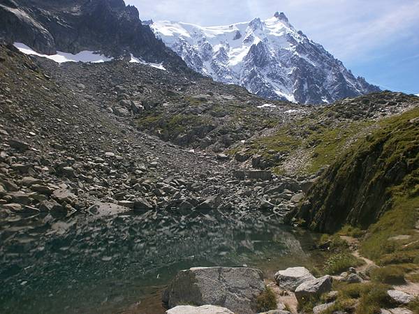 ロープウェイ乗り継ぎ地のプラン・ドゥ・レギュィーユで少し散策。15分程のラック・ブルーへ行ってみることにした。