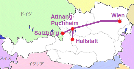 ウィーン西駅 → (3h20) → ハルシュタット[Hallstatt]