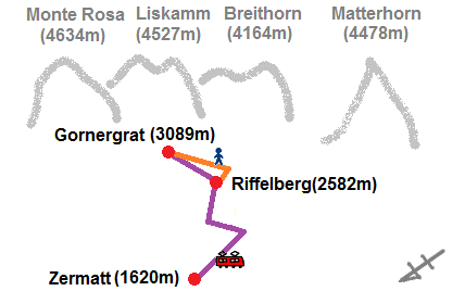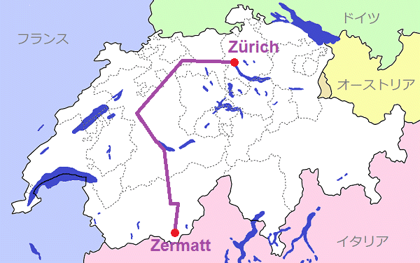 | 8/8(月) | 成田 → (飛行機) → チューリヒ① → ツェルマット② | ツェルマット |