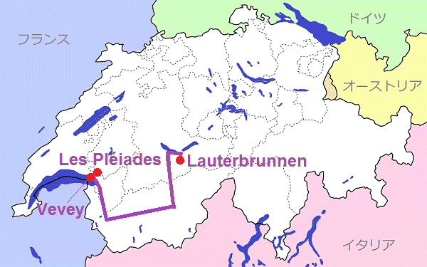 | 8/12(金) | レマン湖地方(ヴヴェイ、レ・プレイアード⑥)ハイキング | ラウターブルンネン |