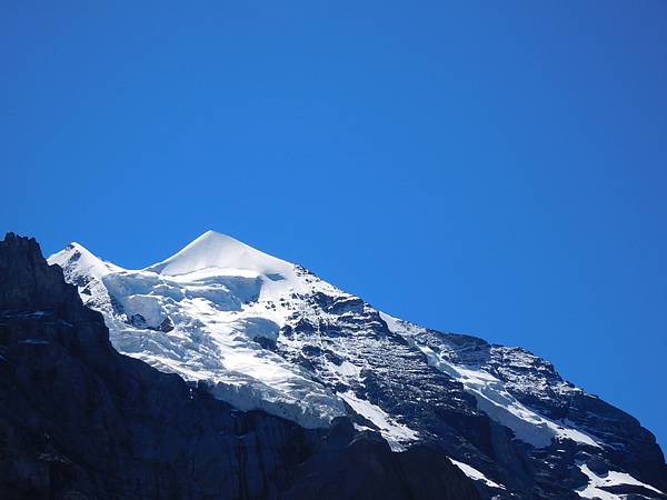 右の白い小さい山:ジルバーホルン[Silberhorn](3695m)
