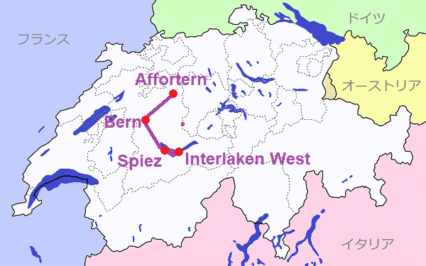 | 8/16(木) | シュピーツ → チューリヒ → (飛行機) 成田(8/17(金)) | 機内 |