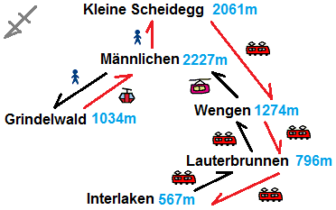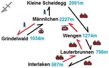 (0h45) → クライネ・シャイデック[KleineScheidegg] →