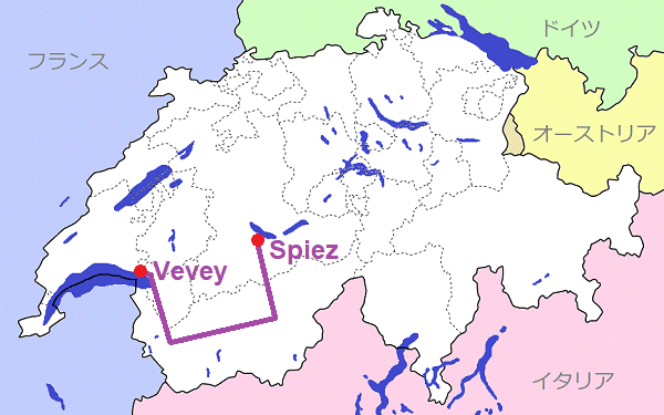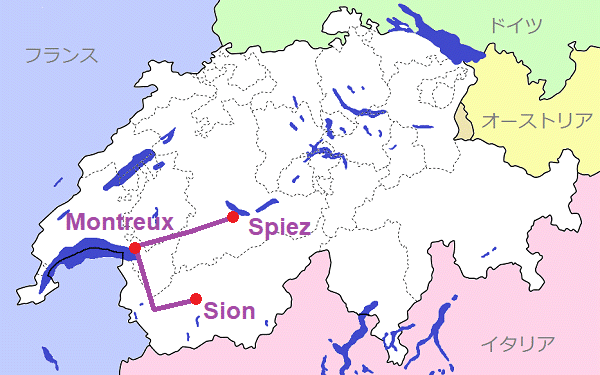 (1h50)(フィスプ[Visp]経由) → ヴヴェイ[Vevey] →