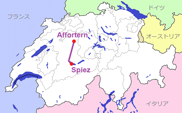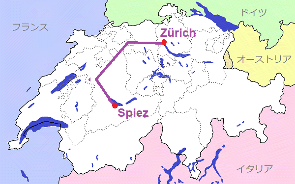 | 8/9(木) | 成田 → (飛行機)(ワルシャワ経由) → チューリヒ① → シュピーツ② | シュピーツ |