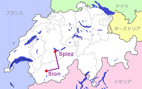 (1h00)(フィスプ[Visp]経由) → シオン[Sion]