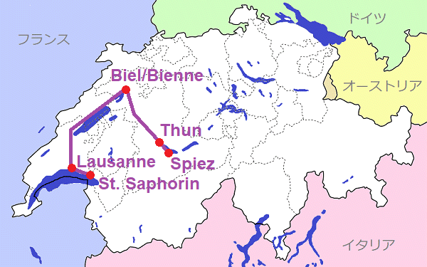 | 8/10(金) | レマン湖地方(モン・ペルラン③、サン・サフォラン)ハイキング、スイス西部、トゥーン湖遊覧船 | シュピーツ |