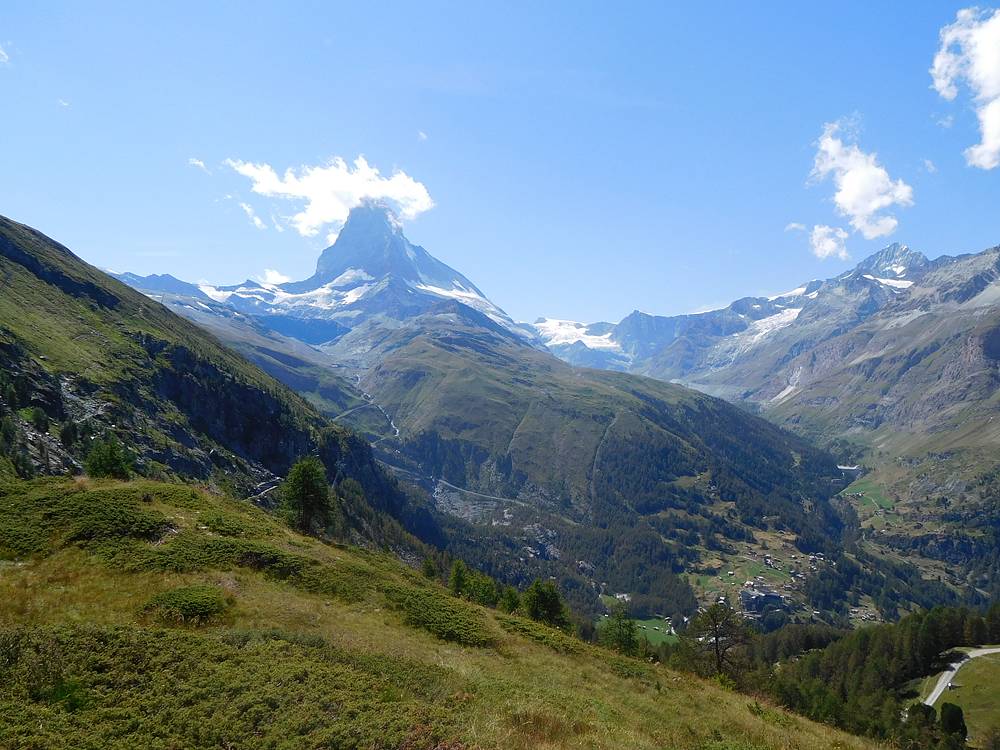 快晴なのでツェルマットへハイキングに向かう。電車は大混雑。