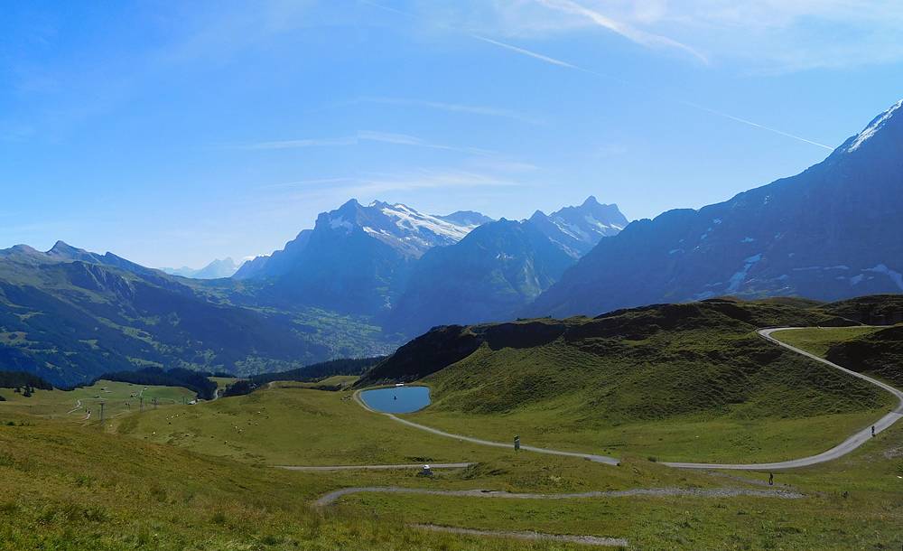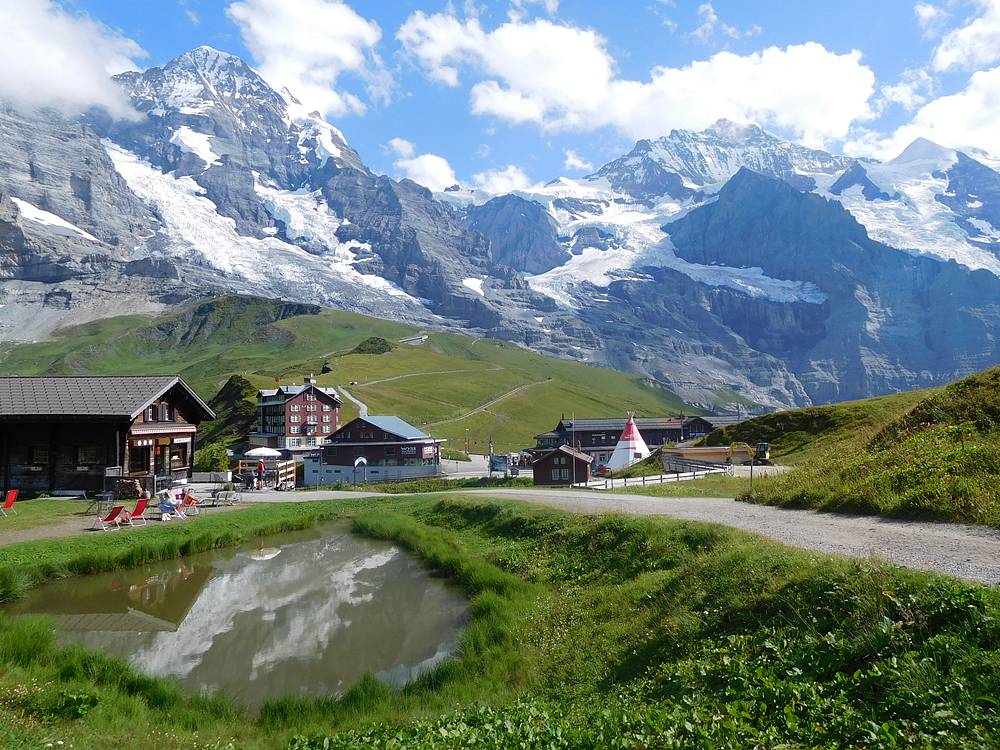 クライネ・シャイデック(2061m)に着くと、アイガー[Eiger]とメンヒ[Mönch]は雲に隠れていた。