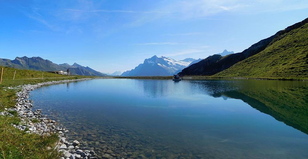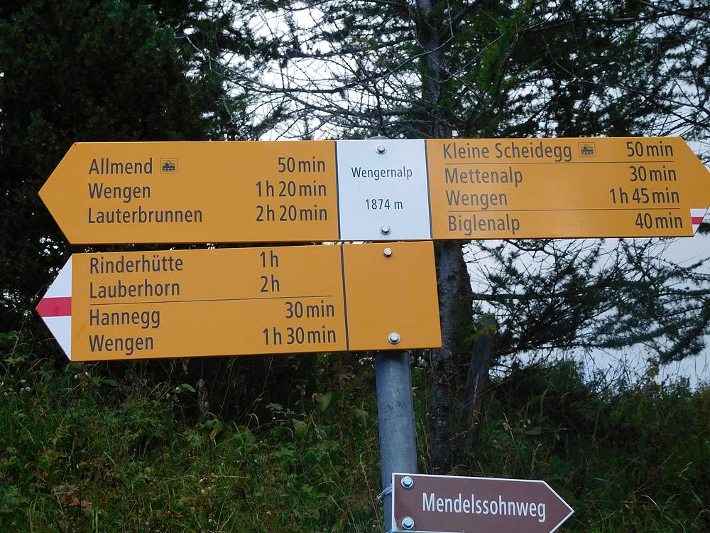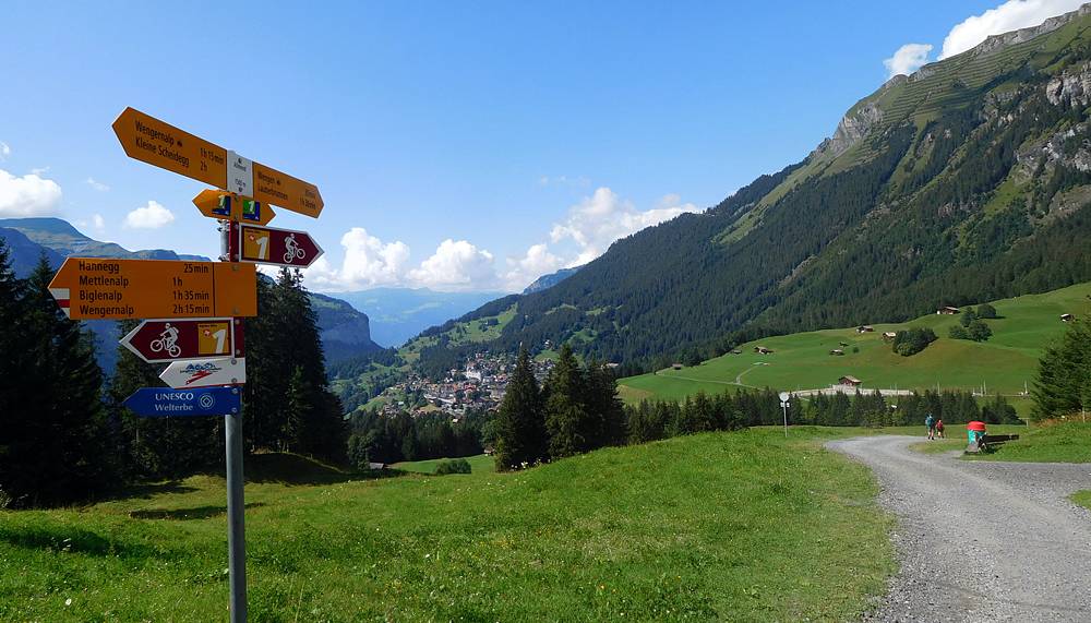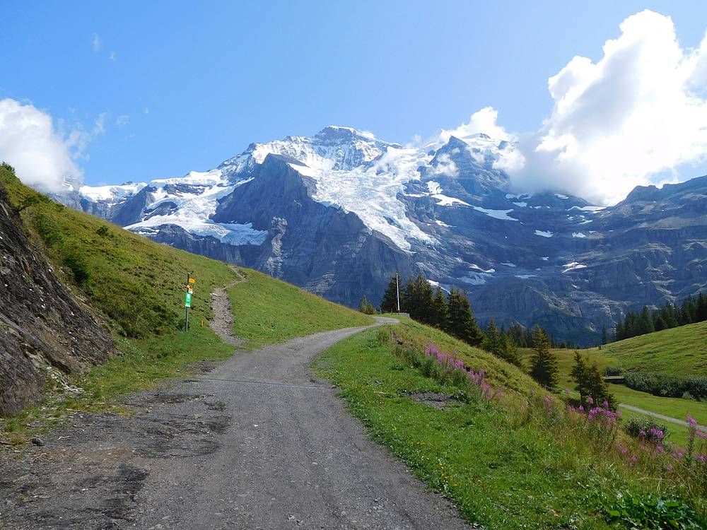 更に20~30分下るとブラットマット[Blattmad]に到着。ここからグリンデルワルトへもブランデックへもどちらも1時間らしい。 見た感じではブランデック方面は森林の中を歩くことになりそうなので、ひらけているグリンデルワルトへ向かうことにした。