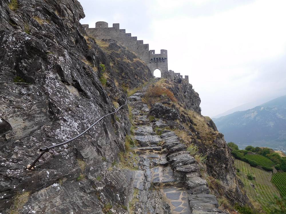 おすすめを聞くとお城があるそうで、行ってみることにする。 インフォメーションから約10分?坂を上る(結構きつい)と城前の広場に到着。お城は2つあって右がヴァレール城、左がトゥールビヨン城。