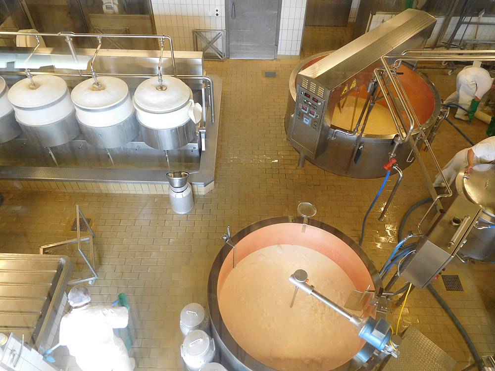 お土産売り場では熟成期間の異なるチーズの試食ができる。比べるまでもなく最長の30ヶ月熟成のエメンタールチーズを購入。 その場で欲しい量をカットして真空パックにしてくれる。 冷蔵庫に入れないとと言われたが、常温状態のまま日本に持ち帰る。(普通においしく食べられた!)