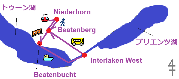 | 8/8(火) | → インターラーケン③、ニーダーホルンハイキング、トゥーン湖遊覧船 | インターラーケン |