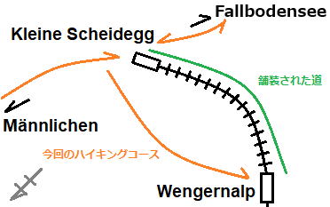 ハイキング道全体を把握することはあきらめて、楽に戻れるルートでシーニゲプラッテへ戻ることにした。