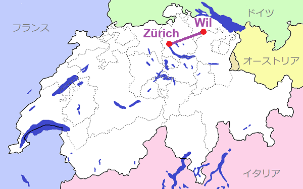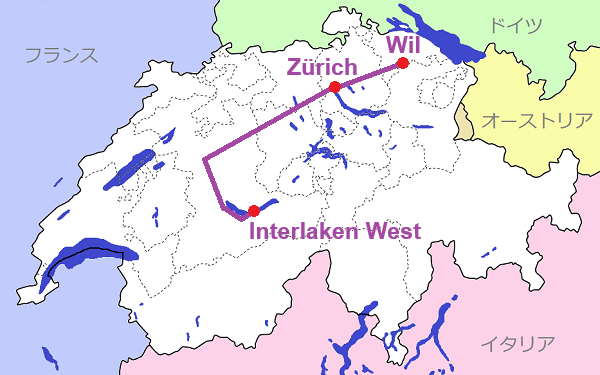 遅延の可能性も考えるとその日のうちにインターラーケンまで行けるかどうか心配だったので、初日のホテルはチューリヒ近郊のヴィル。 ⇒まさかの北回りルート!?