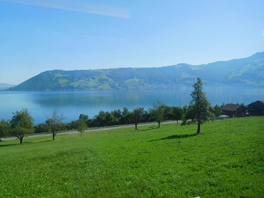 ツーク湖の逆側はユングフラウの山々が見えるのだが・・・ユングフラウ地方で見る山々を斜め裏から見ているので変な感じ。