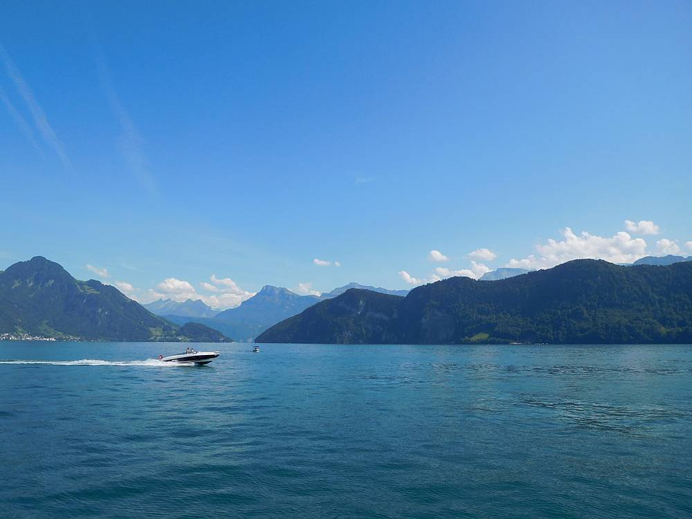 ヴェッギス からは船でルツェルンへ行こうと思っていた。ロープウェイの降り場から船着き場までは15分以上歩く。 早歩きで向かったが、ロープウェイが遅れた分、乗換案内で調べておいた船には乗り継げなかった。
