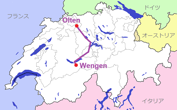 | 8/12(月) | オルテン → ヴェンゲン③、ユングフラウ地方(メンリッヒェン、クライネ・シャイデック、ヴェンゲン)ハイキング | ヴェンゲン |