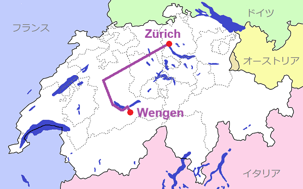 | 8/17(土) | ヴェンゲン → チューリヒ → (飛行機) 成田(8/18(日)) | 機内 |
