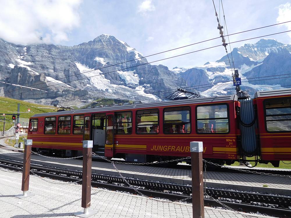 グリンデルワルトからは電車で再びクライネ・シャイデックへ。この電車もベルナー・オーバーラントパスなら追加料金なし。